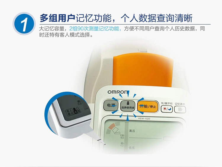 多组记忆,一键测量,静音设计,误动作提示,轻松舒适测量