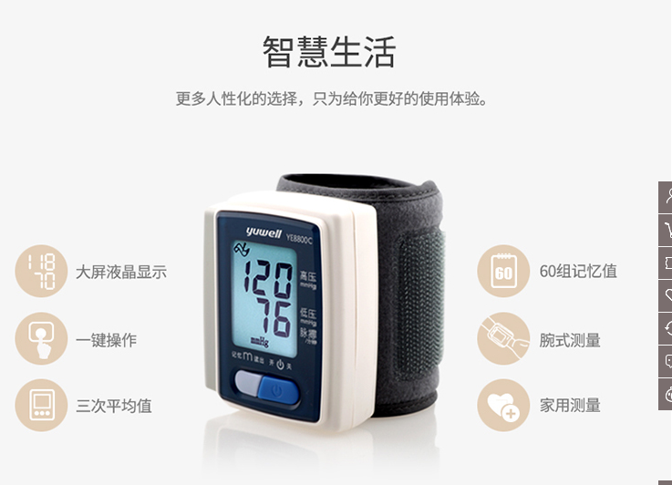 鱼跃(YUWELL)电子血压计 家用腕式YE8800C 全自动测血压仪器